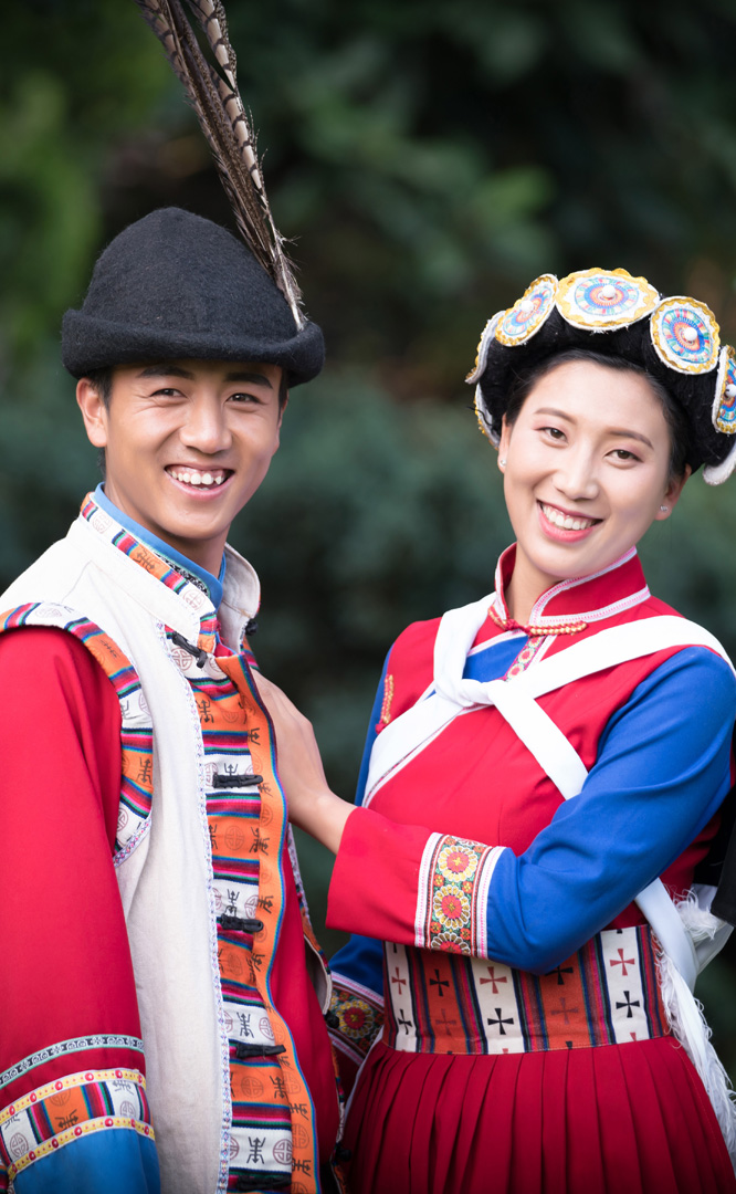彝族在云南境內(nèi)約471萬人,是省內(nèi)人口最多、分布最廣的少數(shù)民族,主要聚居在金沙江、元江流域和哀牢山、無量山腹地。彝族是一個(gè)能歌善舞的民族,民間打歌、跳樂之風(fēng)盛行,大三弦、跌腳舞久負(fù)盛名?;鸢压?jié)是彝族最具特色的民族節(jié)日。彝族村占地50余畝,三虎浮雕墻與虎頭內(nèi)祖師形象表現(xiàn)了彝族虎鷹文化。太陽歷廣場圖騰柱上有太陽、虎、火和八卦圖形象,周圍環(huán)繞著10個(gè)朝向不同的月球造型,外圓周有12生肖石雕。依山而建的“...