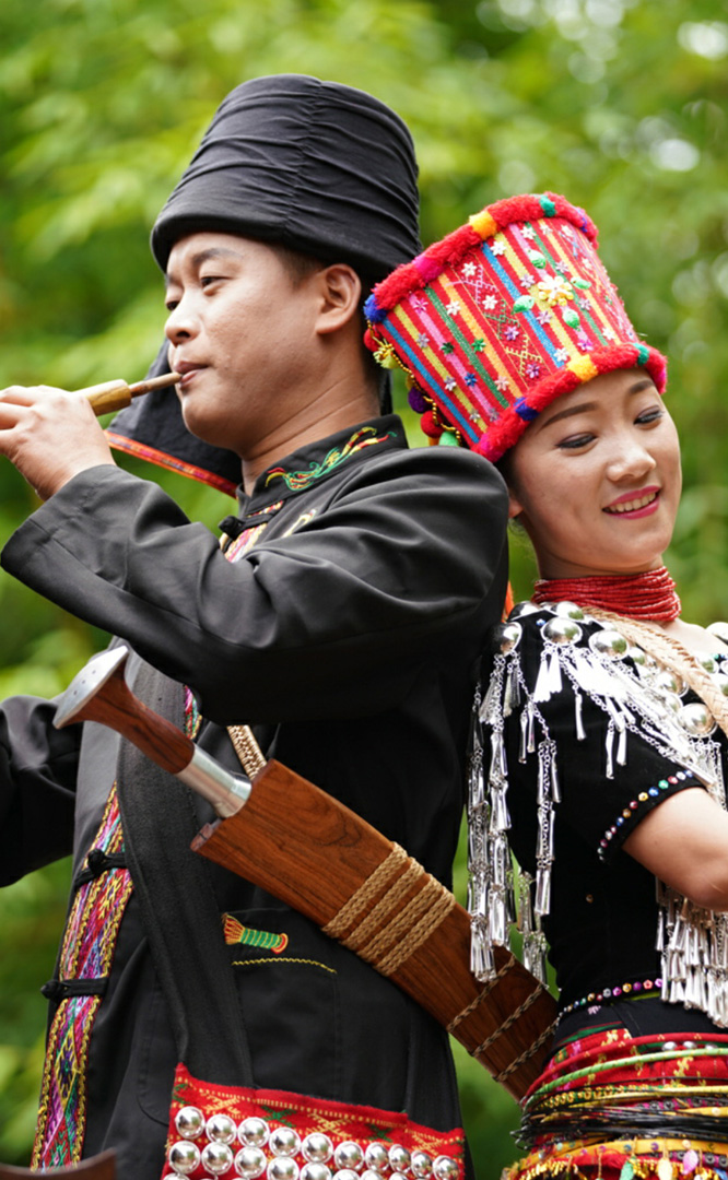 云南壯族主要聚居在文山州,人口114萬,民間的村寨大多依山傍水。壯族擅長種植水稻,有太陽崇拜和長老崇拜的風(fēng)俗,視銅鼓為重器,厚愛銀飾,善烹制五色花米飯,能歌善舞,熱情好客。進(jìn)入景區(qū)壯族村,迎面有祭祀龍王的龍柱,兩邊是先民繪制的天王崖畫和為紀(jì)念傳說洪水泛濫時(shí)幫助先民度過劫難而建的石葫蘆亭。祭祀玉皇大帝的昊天閣和傳說能驅(qū)邪納福的碩大銅鼓聳立在廣場兩側(cè)。桿欄式和麻欄式民居、壯族青年社交休憩的“情廊”、村...